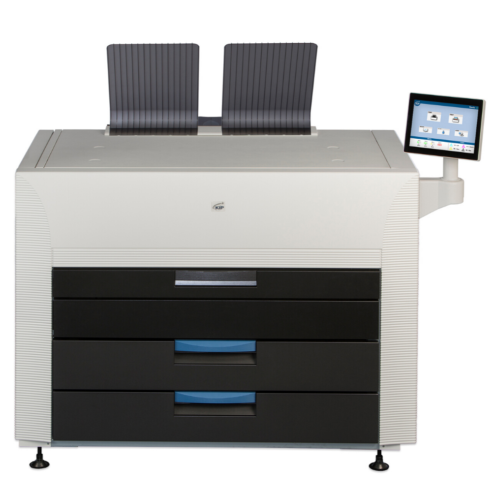 The KIP 870 Color Wide Format Printer is a multi-touch production color print system that delivers outstanding performance and reliability, designed for high demand project requirements. It produces high resolution color and black & white mixed set production with built-in cost efficiency reporting. The KIP 870 Wide Format Printer features compact front stacking design with versatile rear stacking or folding accessories that increase productivity.