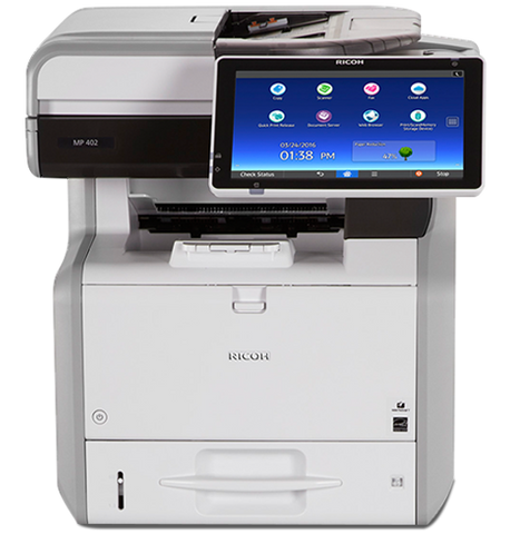 The Ricoh Aficio MP 402SP Mono Laser Multifunction Printer presents the ideal combination of convenience and productivity in a compact-design. It allows users to print forms, invoices, and wide range of document types at high speeds. The Ricoh Aficio MP 402SPF also allows users to create their own automated workflow shortcuts to reduce manual steps.