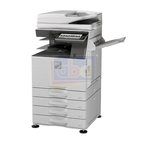 | Feeding options | MX-60ABD Deluxe Copier Cabinet Base (with front door) MX-DE25Stand/1 x 550-sheet Paper Drawer MX-DE26 Stand/2 x 550-sheet Paper Drawers MX-DE27 Stand/3 x 550-sheet Paper Drawers MX-DE28 Stand/1 x 550 + 2,100-sheet Split Tandem Paper Drawers MX-DE29 Low Stand/1 x 550-sheet Paper Drawer MX-LC17 3,000-sheet Large Capacity Cassette (letter, requires MX-DE25/26/27/28) MX-LT10 Long Paper Feeding Tray |
