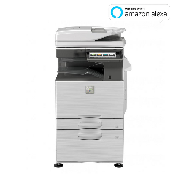 * Contact us for pricing and availability.| Feeding options | MX-60ABD Deluxe Copier Cabinet Base (with front door) MX-DE25N Stand/1 x 550-sheet Paper Drawer MX-DE26N Stand/2 x 550-sheet Paper Drawers MX-DE27N Stand/3 x 550-sheet Paper Drawers MX-DE28N Stand/1 x 550 + 2,100-sheet Split Tandem Paper Drawers MX-DE29N Low Stand/1 x 550-sheet Paper Drawer MX-LC17N 3,000-sheet Large Capacity Cassette (letter, requires MX-DE25N/26N/27N/28N) MX-LT10 Long Paper Feeding Tray |
