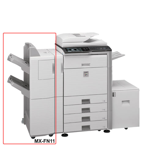The Sharp MX-FN11 Stacking Staple Finisher is an optional accessory for Sharp copiers including Sharp MX-M503N, MX-M503U, MX-M453N,MX-M453U, MX-M363N, MX-M363U, MX-M283N, MX-M283U, MX-5001N, MX-4101N, MX-4100N, MX-4110N, MX-4111N, MX-5110N, MX-5111N, MX-M365N, MX-M465N, and MX-M565N.