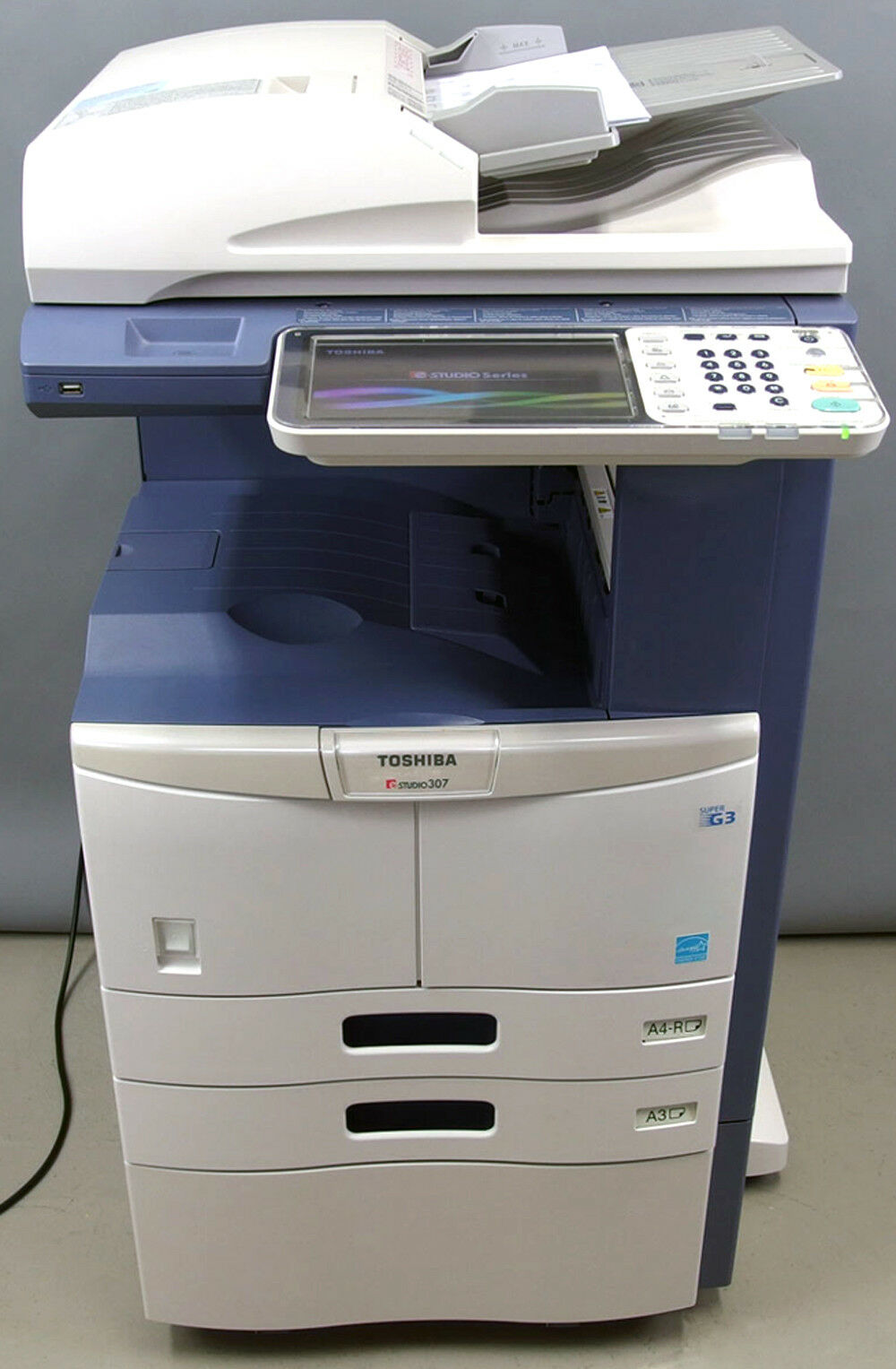 The Toshiba e-Studio 307 prints up to 30 pages per minute, and comes with a printing resolution of up to 2400 x 600 dpi (with Smoothing). It has a maximum duty cycle of up to 120,000 pages per month. It can print on media sizes up to 11" x 17" inches or A3 paper sizes. It also comes with a paper input capacity of 1,200 sheets, which can be expanded up to 3,200 sheets.